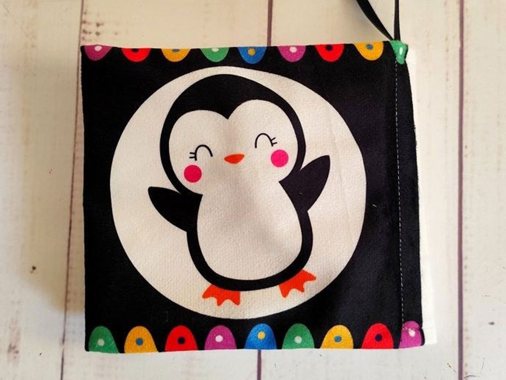 کتاب پارچه ای سیاه و سفید از الیاف ضدحساسیت و ایمن برای نوزادان طراحی و تولید شده است بنابراین هیچ گونه حساسیت و آلرژی برای نوزاد به وجود نمی آورد. داخل صفحات این کتاب یک لایه پلاستیکی نازک و یک عدد سوتک تعبیه شده که همین امر کمک به تقویت حس شنیداری کودک می کند. از آنجایی که جنس این کتاب از پارچه است نوزاد با لمس آن حس لامسه اش تقویت می شود.