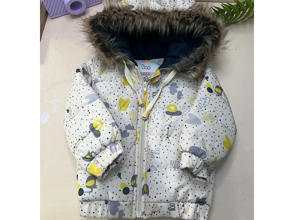 کاپشن کلاهدار نوزادی طرح فیل baby boo