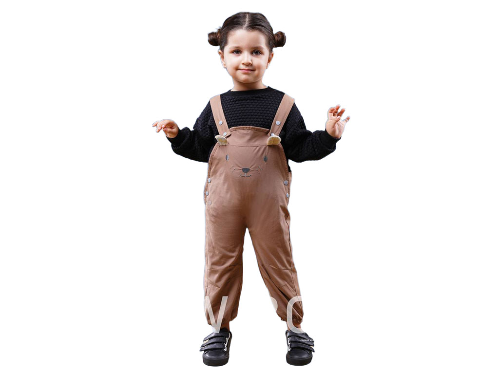شلوار پیشبندی کتان رنگ نسکافه ای طرح خرس