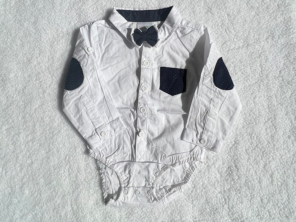 #شومیز بادی نوزادی پسرانه رنگ سفید همراه با پاپیون