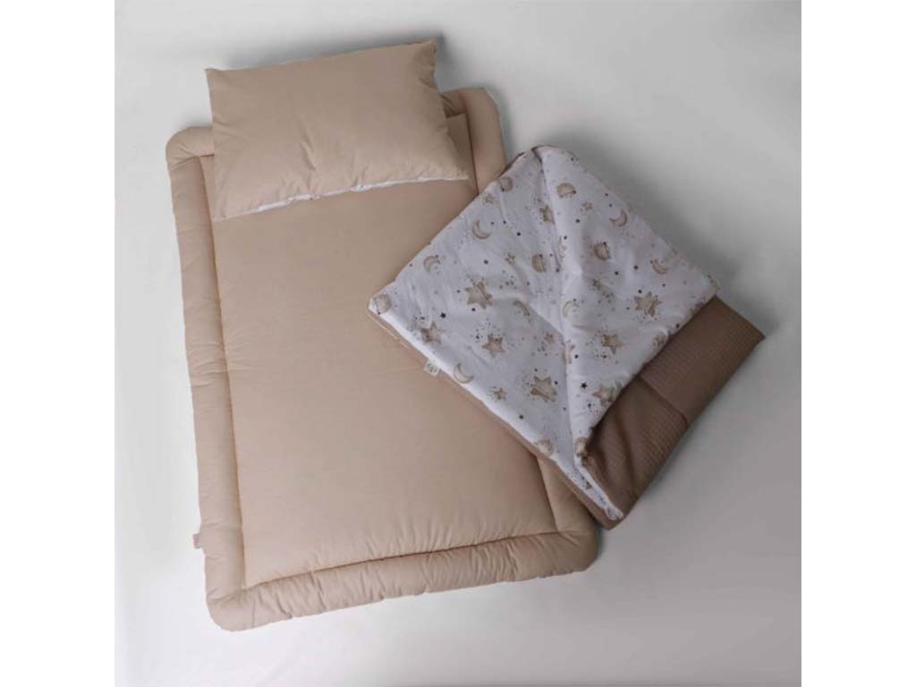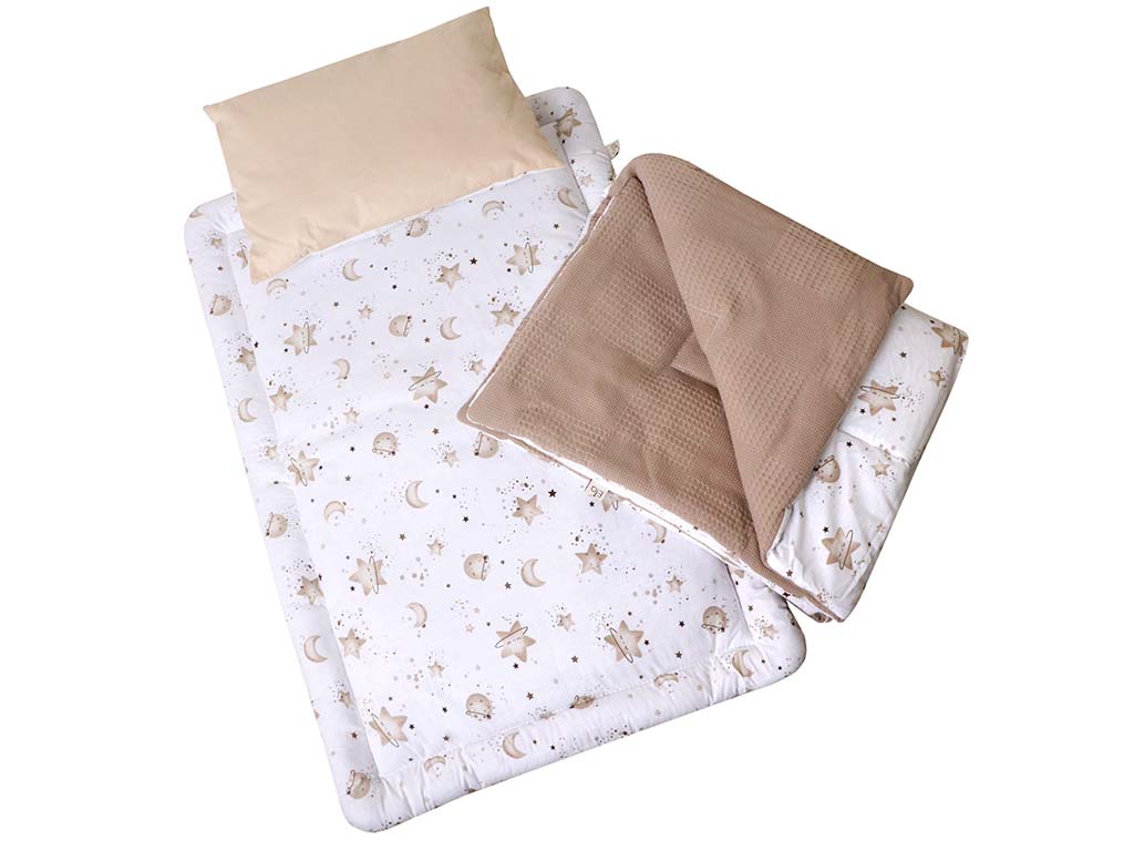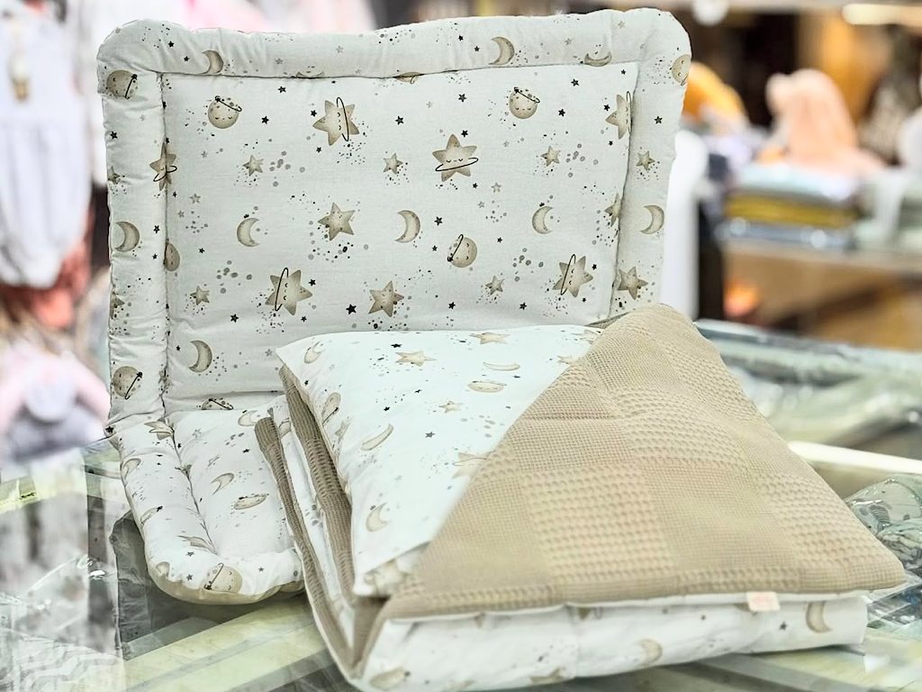 #سرویس خواب دم دستی مسافرتی نوزادی(سایز 2)مجموعه 3 عددی تشک، لحاف و بالشت طرح کهکشان نسکافه ای الا ELA