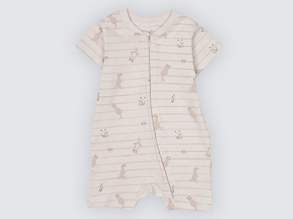 #رامپر نوزاد و کودک رنگ کرم طرح سمور آبی پاپو PAPO