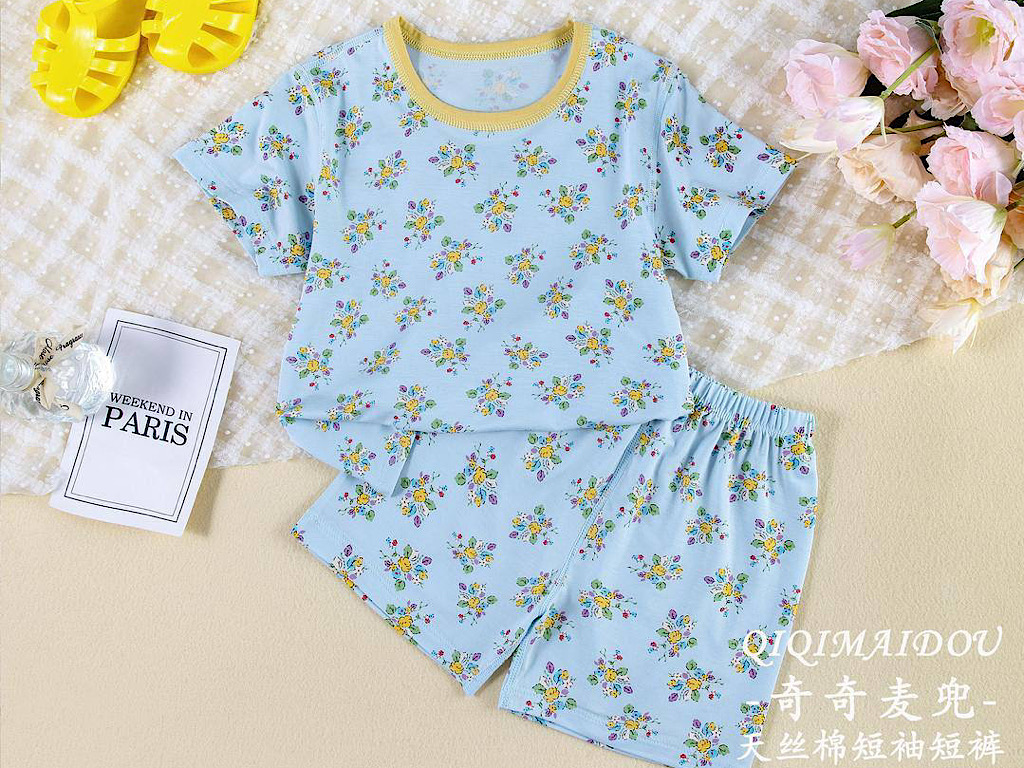 تیشرت و شلوارک راحتی آبی رنگ دخترانه طرح گل