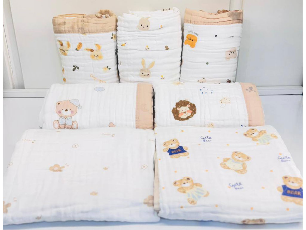 پتو دورپیچ نخی تابستانه دولایه با پارچه موسلین