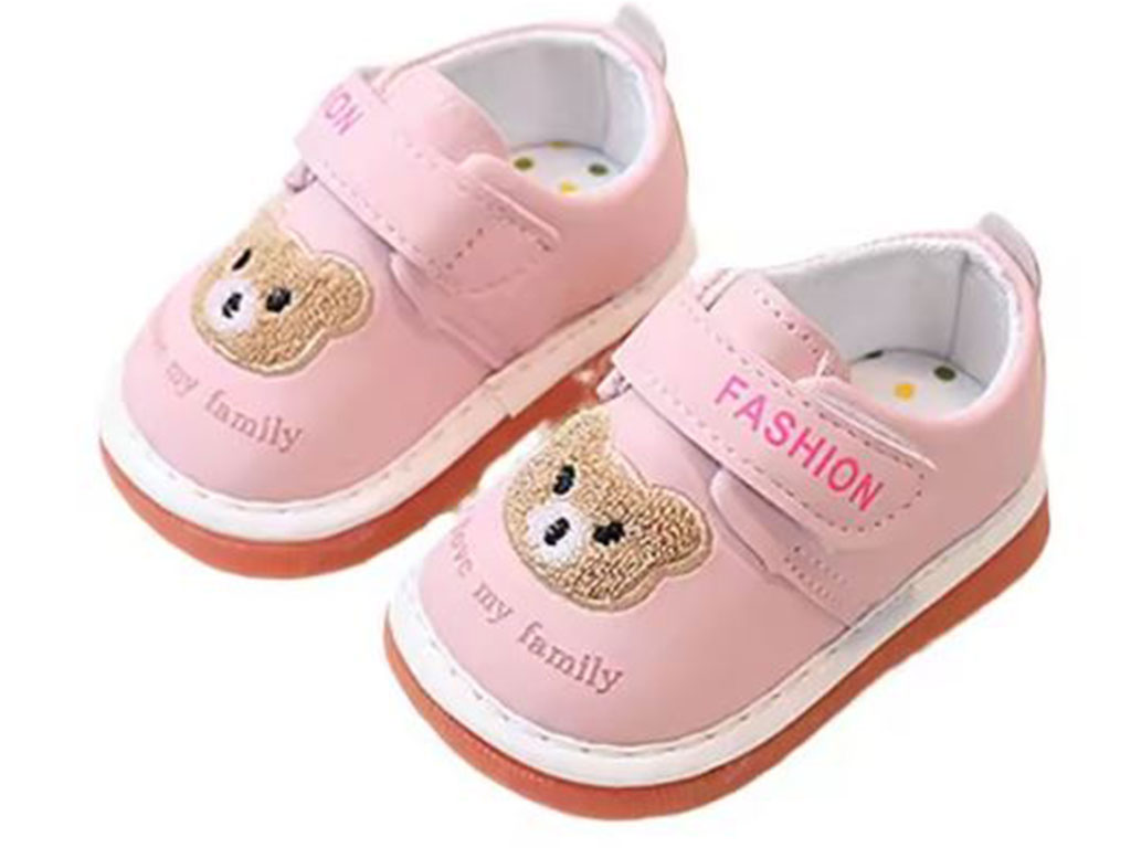 کفش سوتی و جغجغه ای دخترانه نوزادی رنگ صورتی طرح خرس تدی