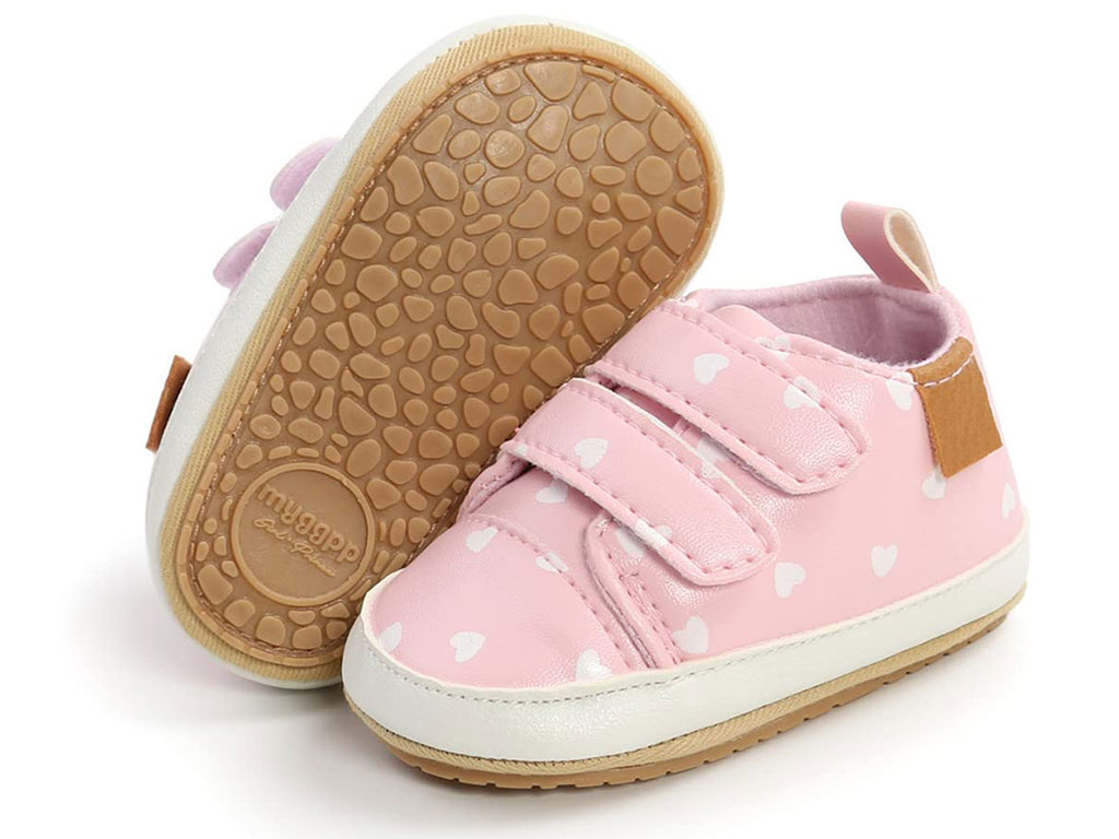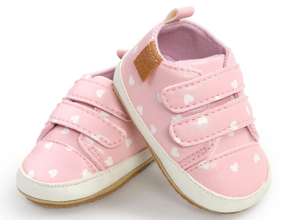 پاپوش استپ دار نوزادی رنگ صورتی طرح قلب