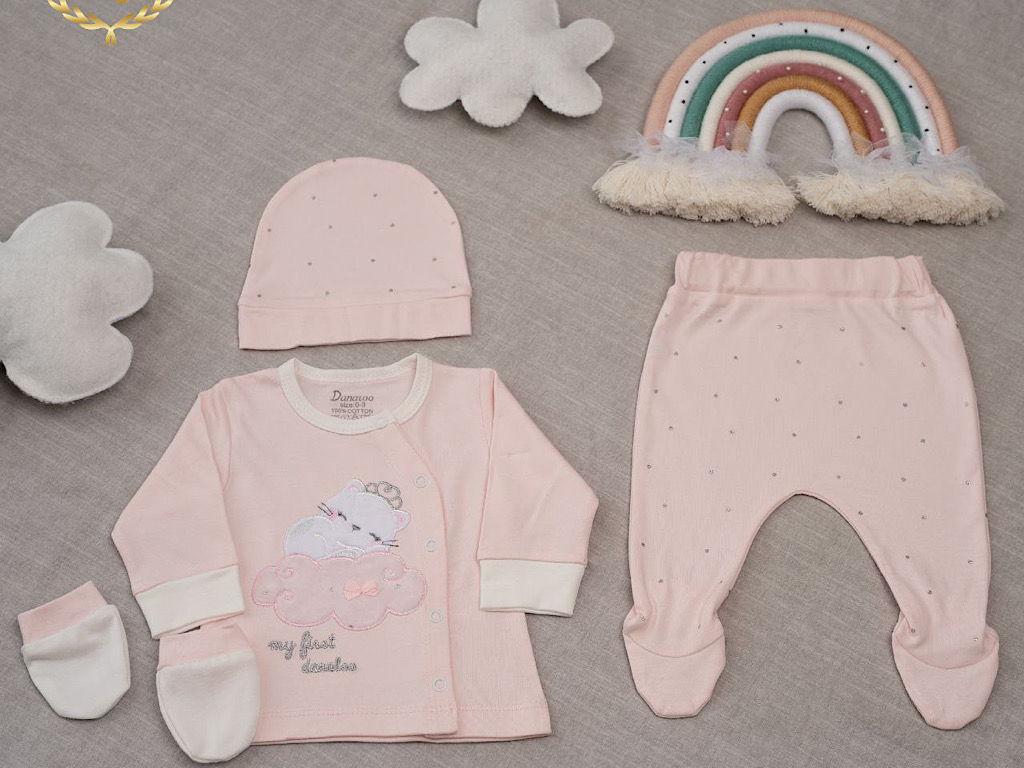 ست بیمارستانی 4 تکه نوزادی طرح گربه تاج دانالو Danaloo