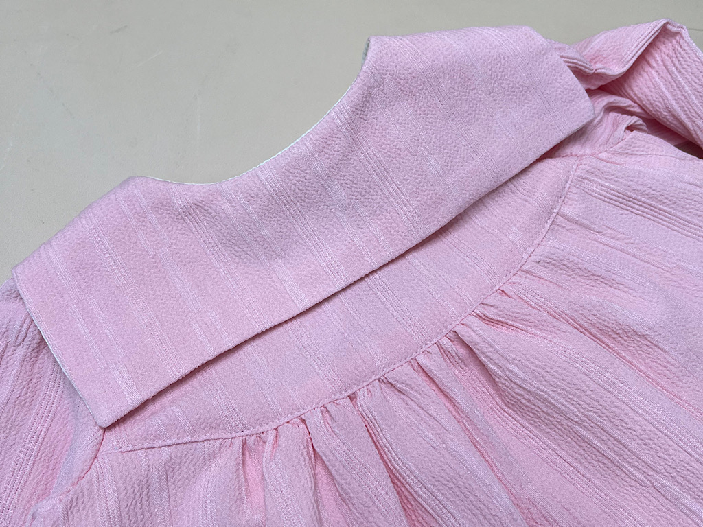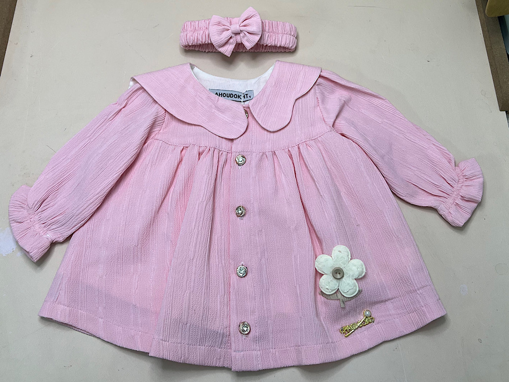 پیراهن آستین بلند دخترانه رنگ صورتی همراه هدبند طرح گل برجسته