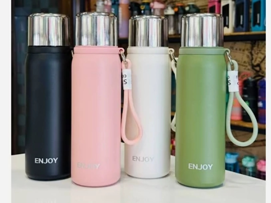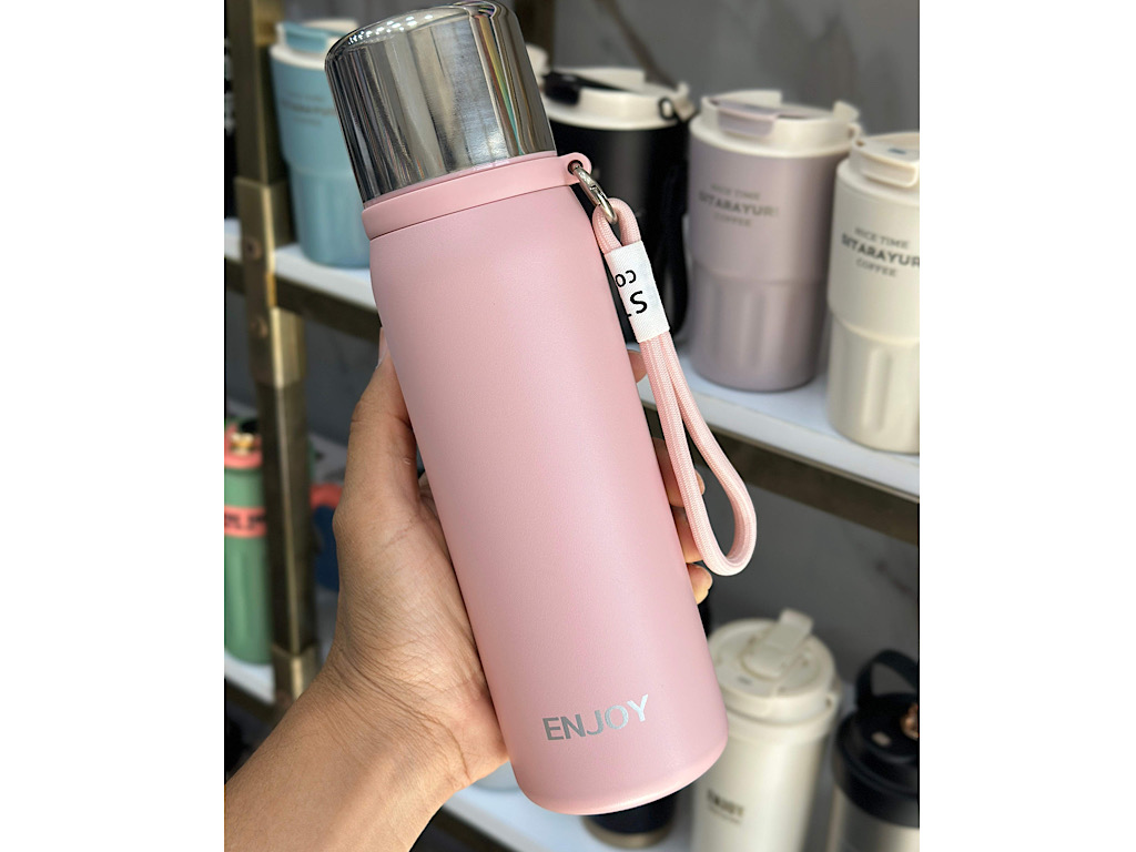 فلاسک استیل حجم 680 میلی لیتر دارای توری صافی و بند دستی Enjoy