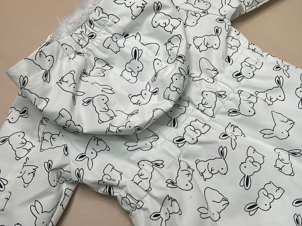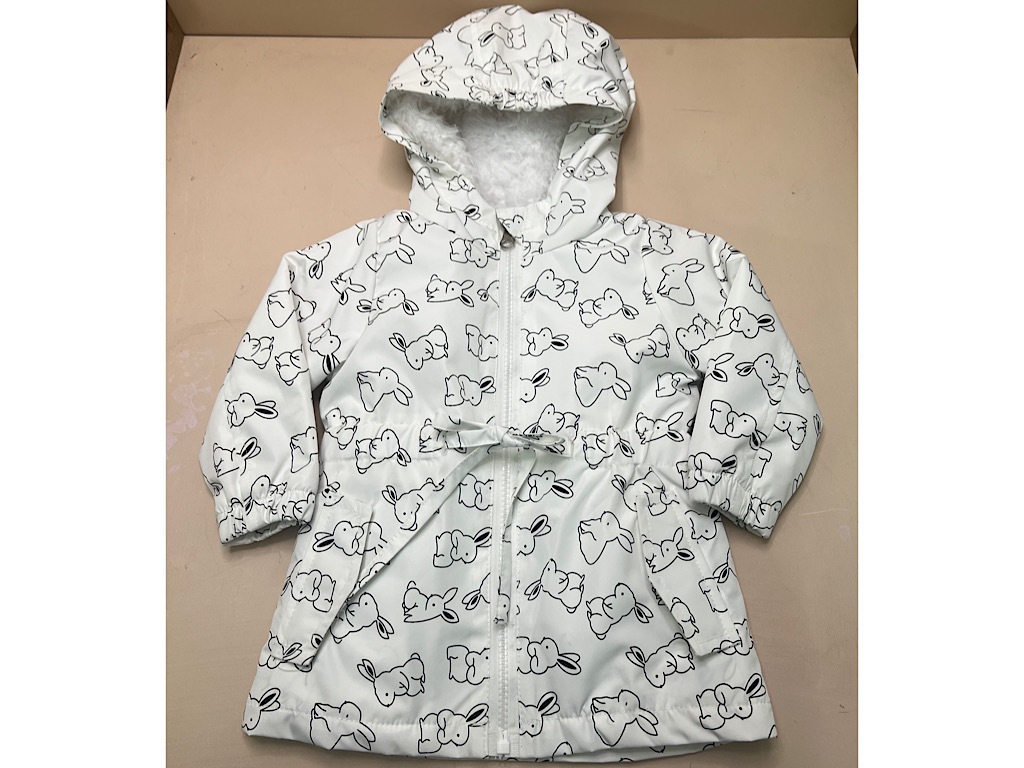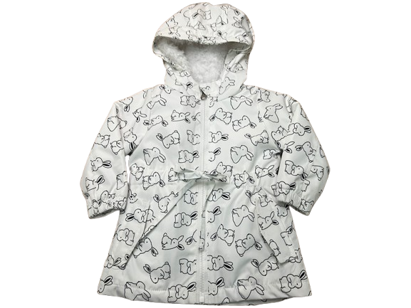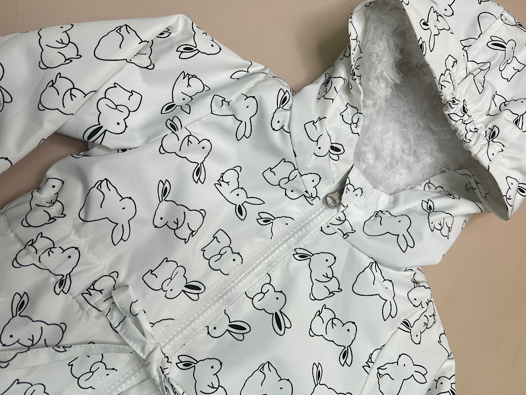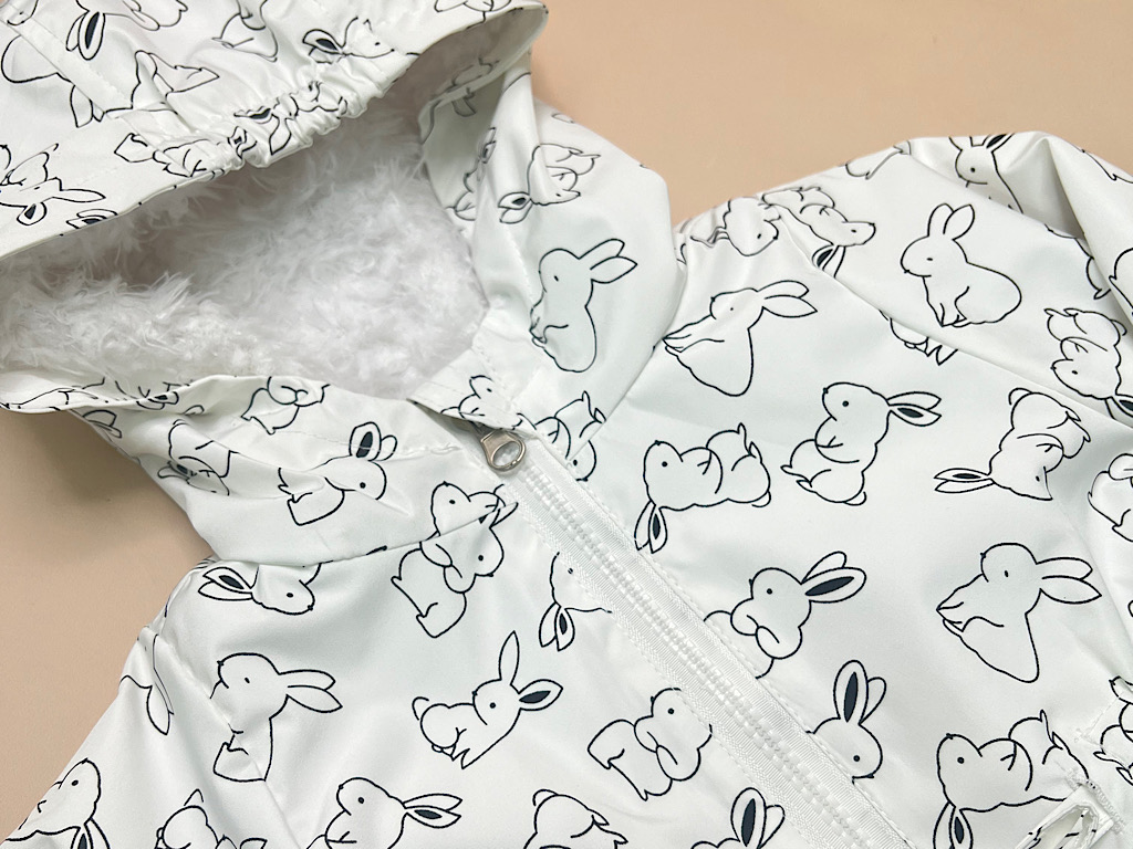 بارانی کلاهدار توکرکی دخترانه رنگ سفید طرح خرگوش