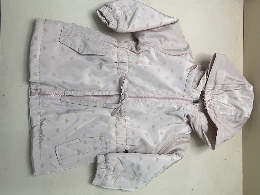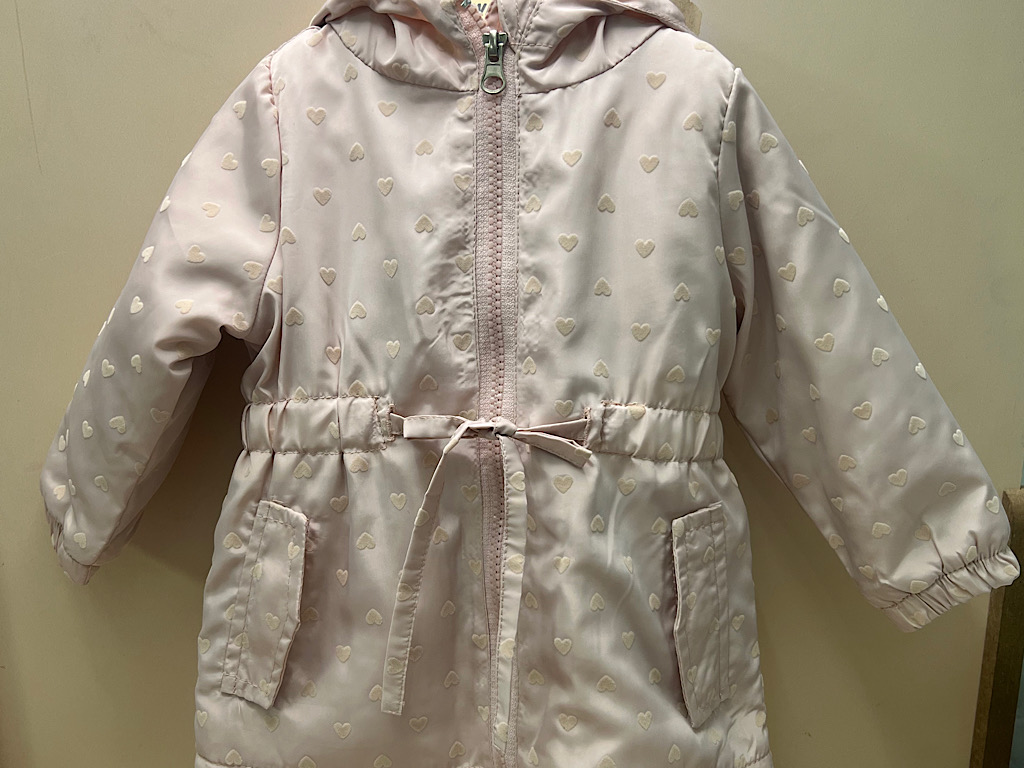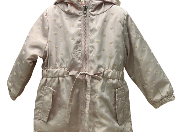بارانی کلاهدار توکرکی دخترانه رنگ صورتی روشن طرح قلب