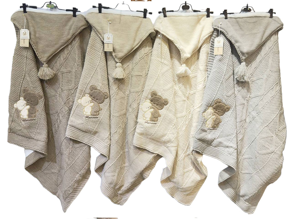 پتو بافت کلاهدار توکرکی طرح خرس تدی و عروسک ماماسی Mama See