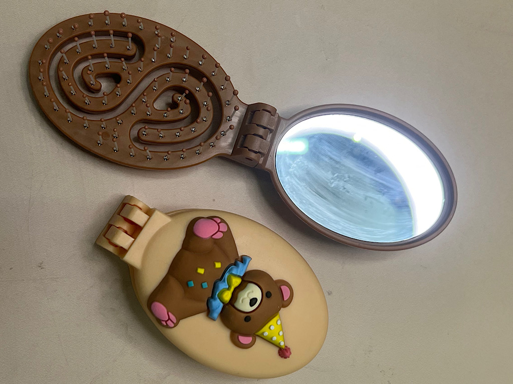برس سر آینه دار بچگانه تاشو بیضی شکل طرح خرس
