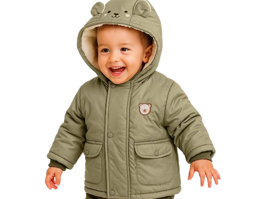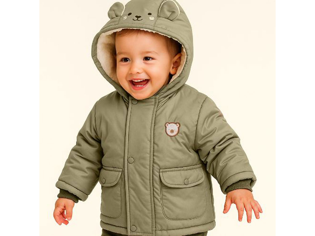 کاپشن کلاهدار توکرکی نوزادی رنگ سبز طرح خرسDelyar از برند پاپو papo