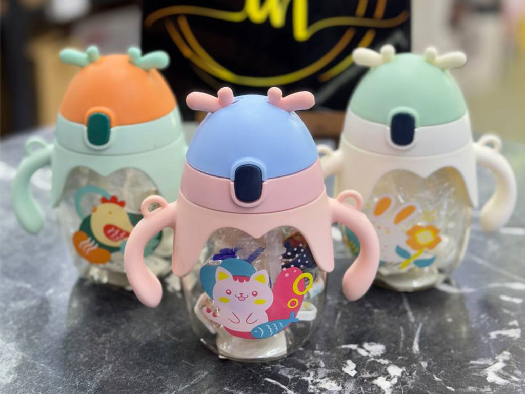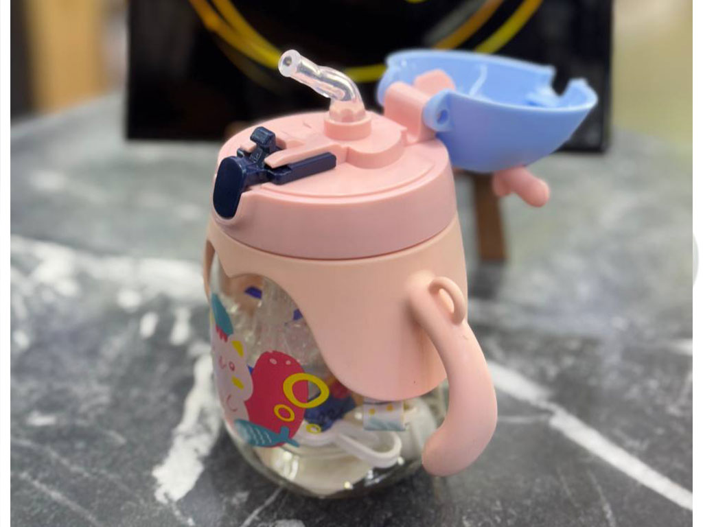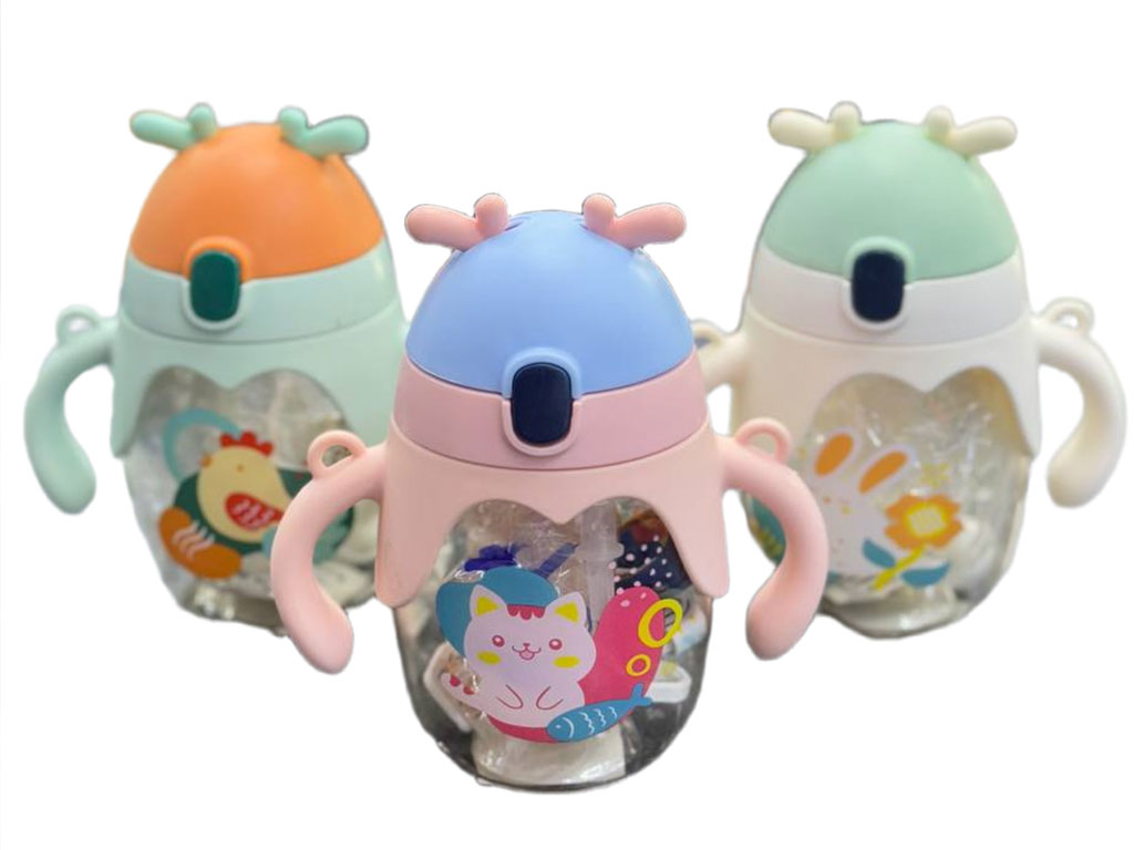لیوان نی دار دارای دسته و بند بلند حجم 300 میل طرح شاخدار سیلیکونی