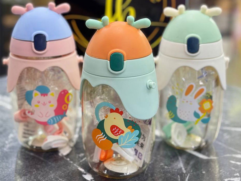 لیوان نی دار دارای بند بلند حجم 400 میل طرح شاخدار سیلیکونی