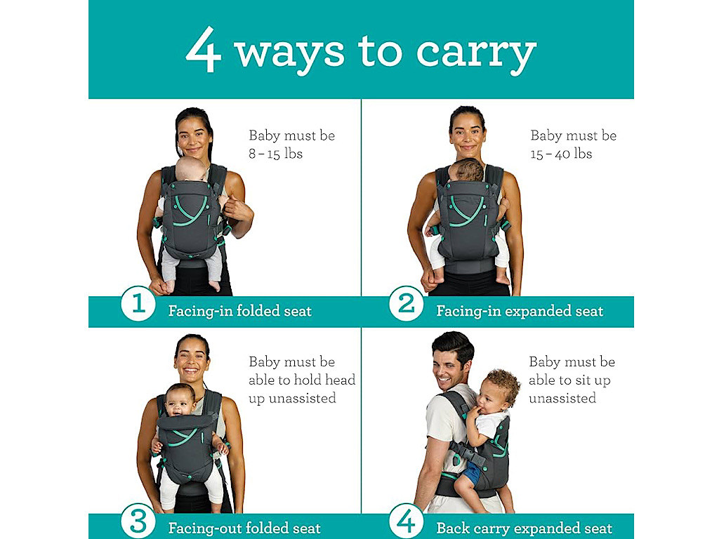 • حالت رو به شما (Face-in): برای نوزادان کوچکتر، که نیاز به نزدیکی و حس امنیت دارند.