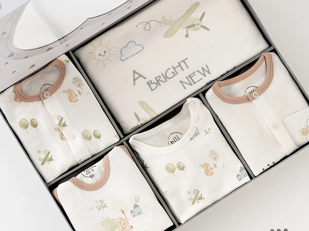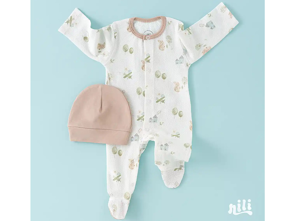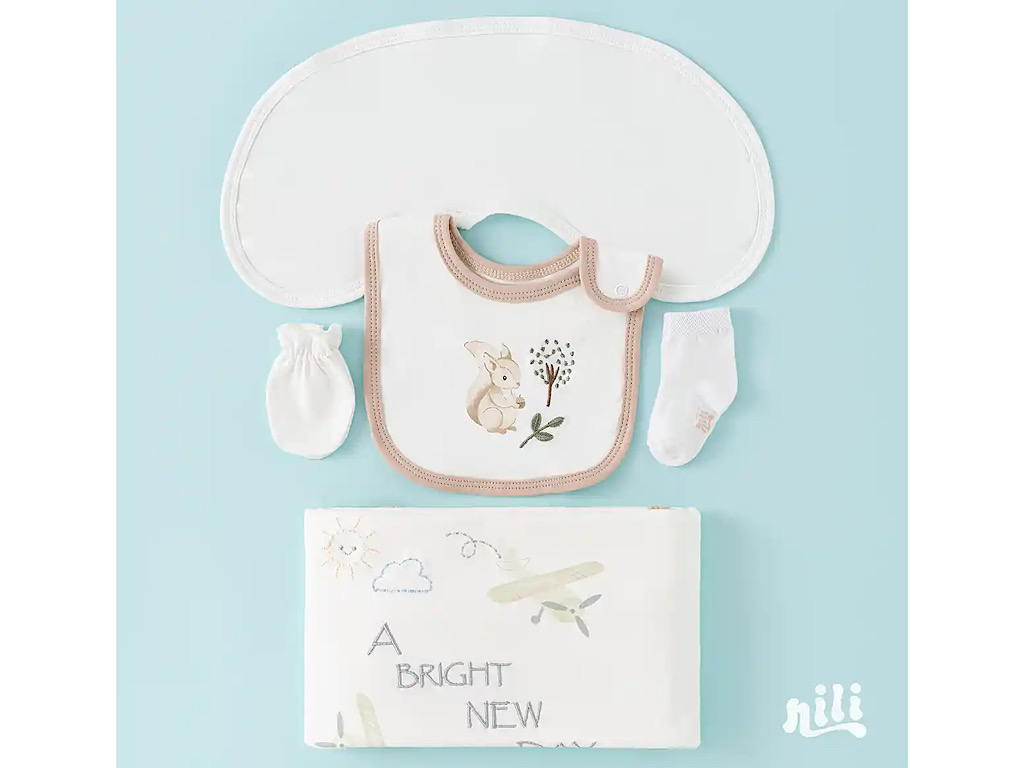 ست بیمارستانی 13 تکه نوزادی طرح سنجاب نیلی NILI