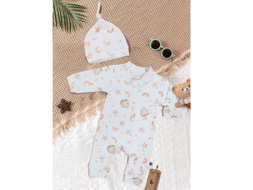 سرهمی نوزادی کلاه دار طرح رنگین کمان، ماه و ستاره کارامل caramell