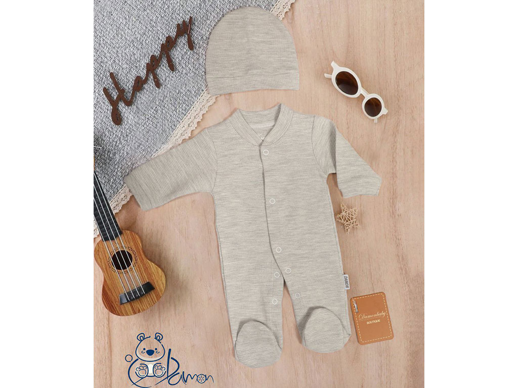 سرهمی جوراب و کلاه دار کبریتی نوزادی رنگ طوسی روشن دامون damon