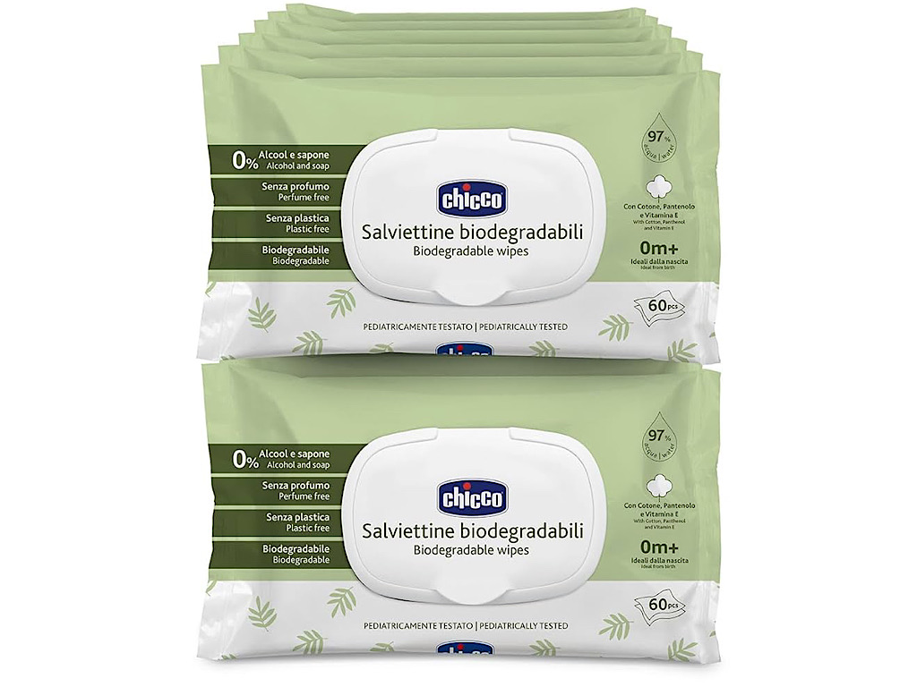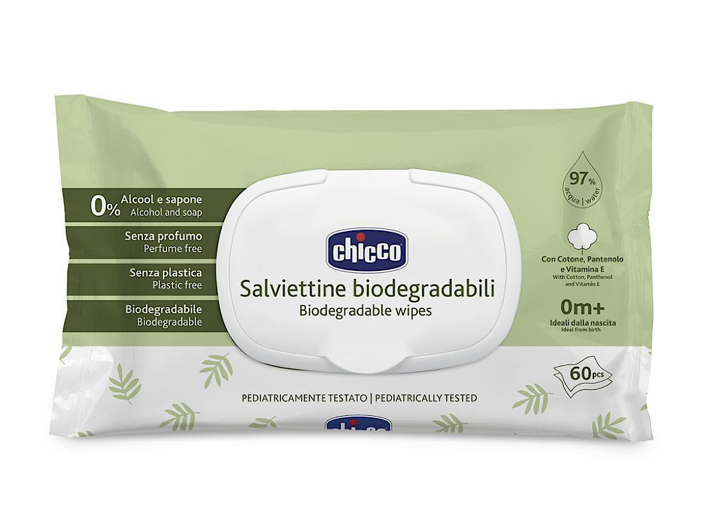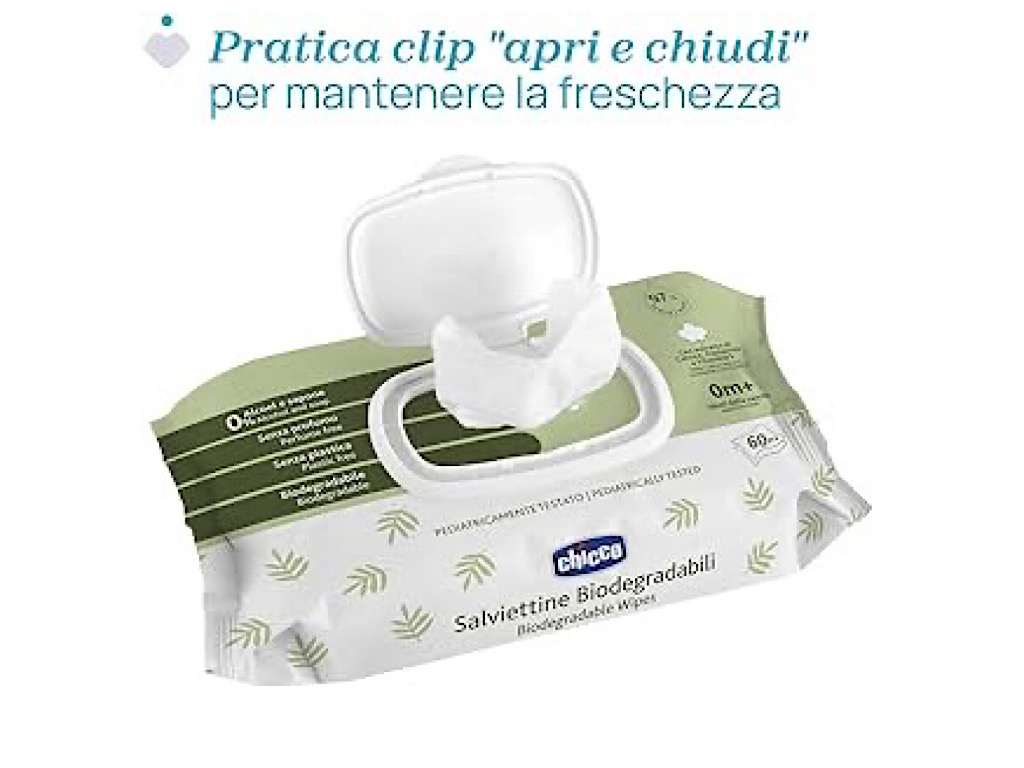 دستمال مرطوب بدون عطر و تجزیه پذیر نوزادی 60 عددی درب دار چیکو chicco