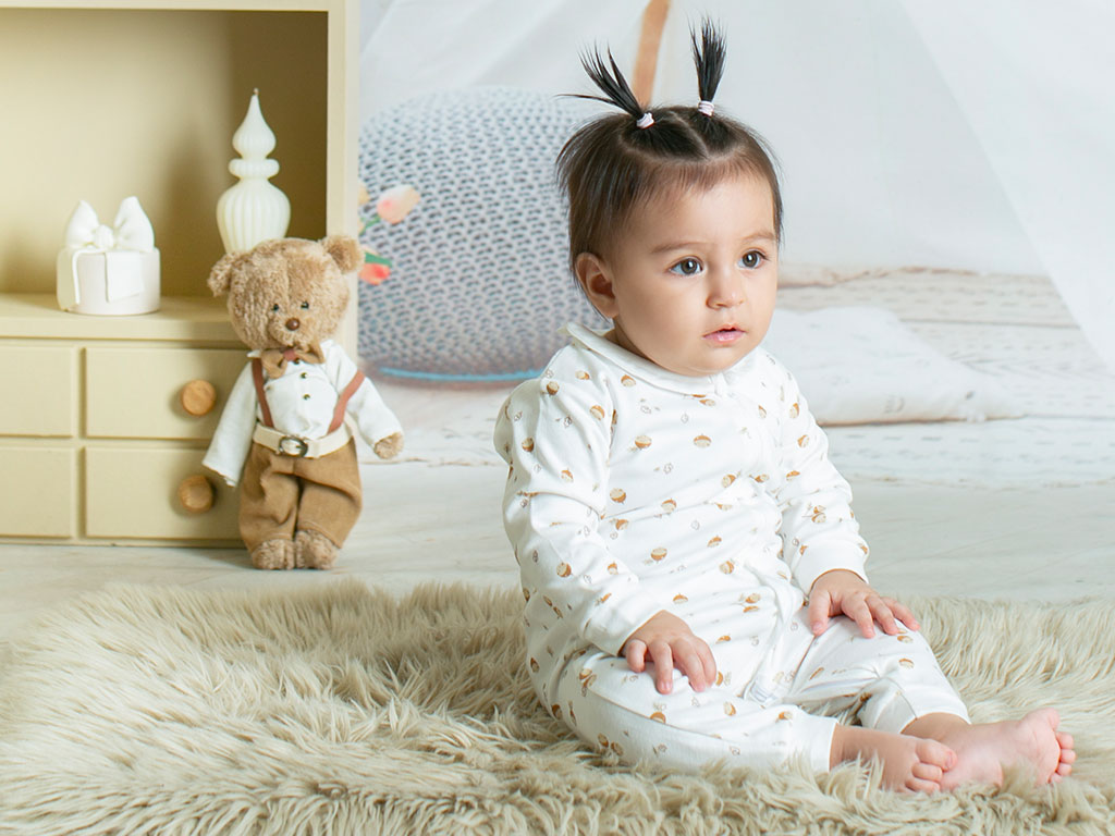 سرهمی نوزادی دخترانه رنگ سفید طرح فندق دانالو Danaloo