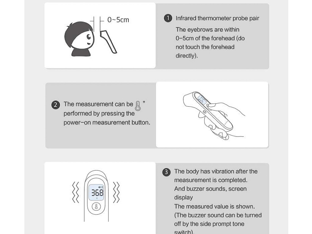 - تب سنج را در فاصله 0تا5 سانتی متری پیشانی قرار دهید.
