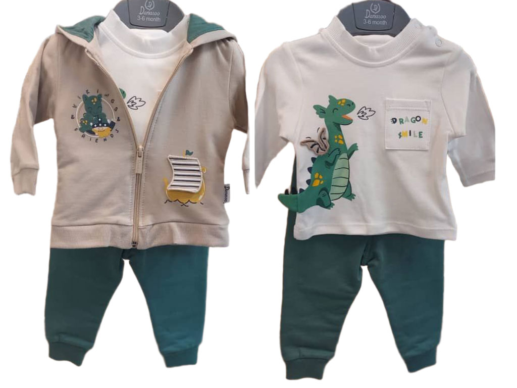 ست سه تکه سویشرت و بلوز و شلوار نوزادی پسرانه طرح دراگون دانالو Danaloo