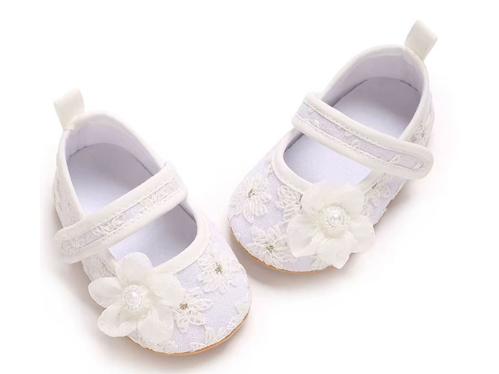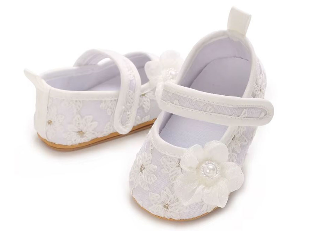 پاپوش استپ دار نوزادی رنگ شیری طرح گل برجسته