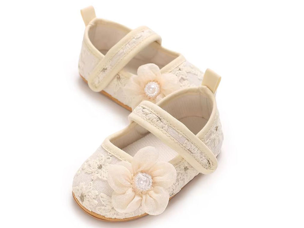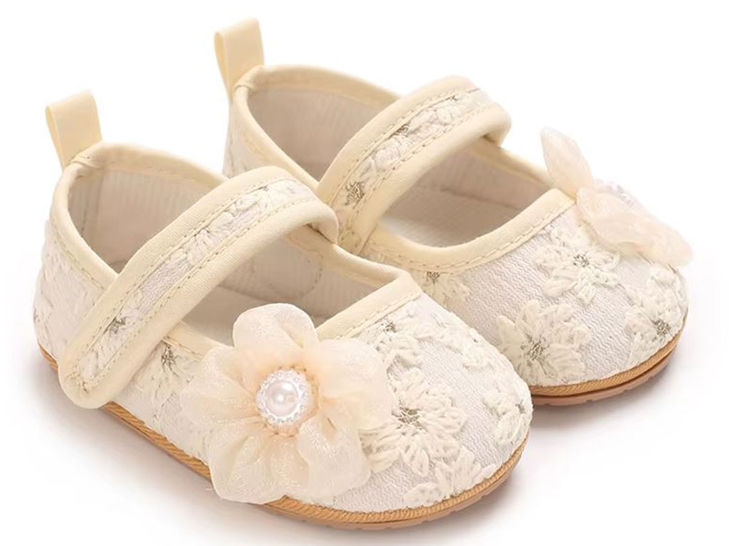 پاپوش استپ دار نوزادی رنگ نباتی طرح گل برجسته