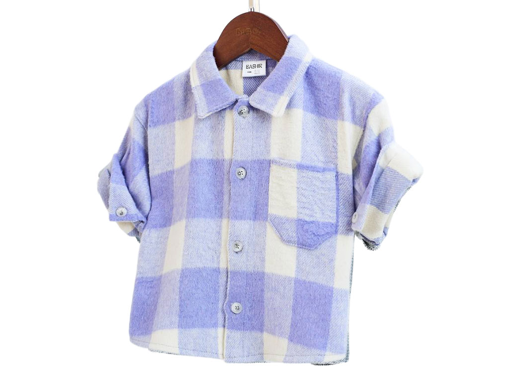 پیراهن پشمی (شکت) چهارخانه رنگ یاسی بشیر Bashir