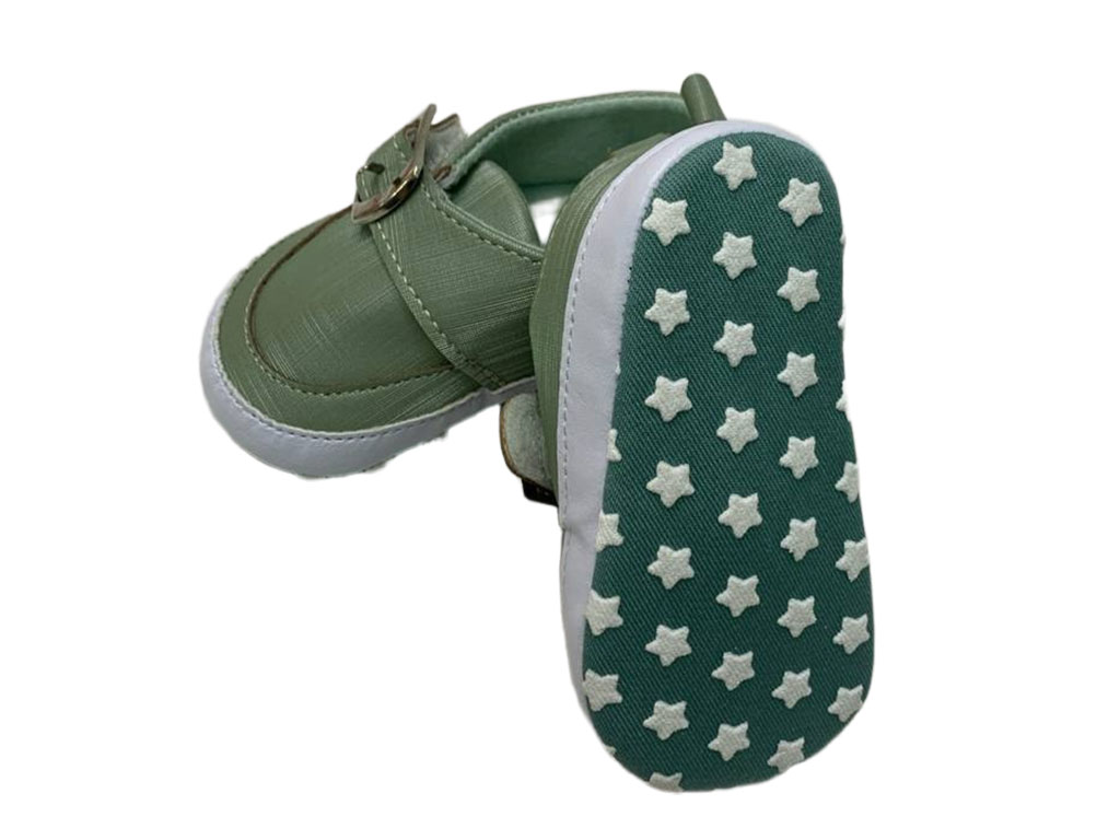 پاپوش استپ دار نوزادی رنگ سبز مدل سگک دار