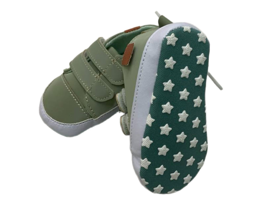 پاپوش استپ دار نوزادی رنگ سبز مدل دو ردیف چسب