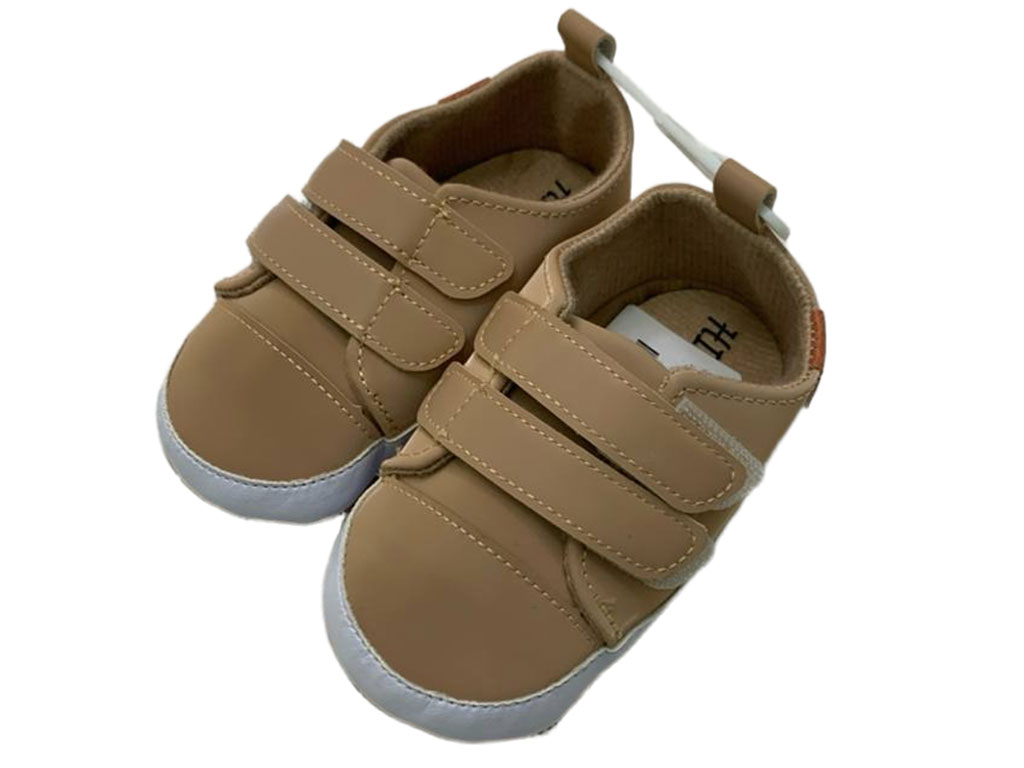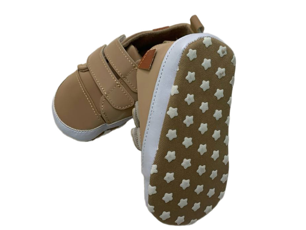 پاپوش استپ دار نوزادی رنگ نسکافه ای مدل دو ردیف چسب