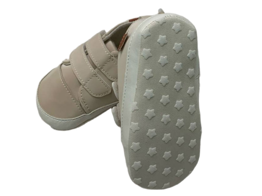 پاپوش استپ دار نوزادی رنگ کرم روشن مدل دو ردیف چسب