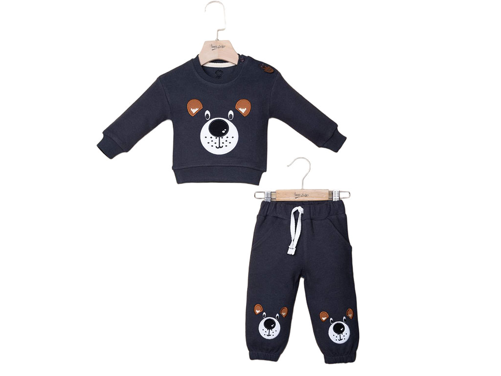 بلوز و شلوار سلانیک رنگ سرمه ای تیره طرح خرس تکه دوزی شده آی نور بیبی inoor baby