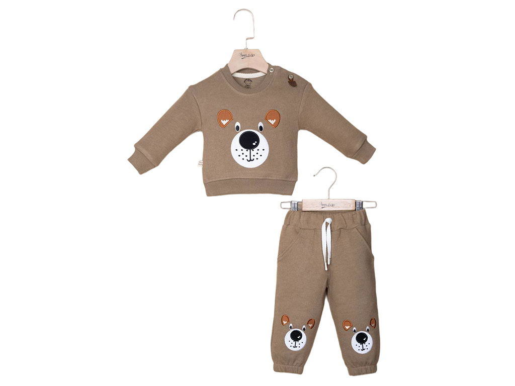 #بلوز و شلوار سلانیک رنگ نسکافه ای طرح خرس تکه دوزی شده آی نور بیبی inoor baby