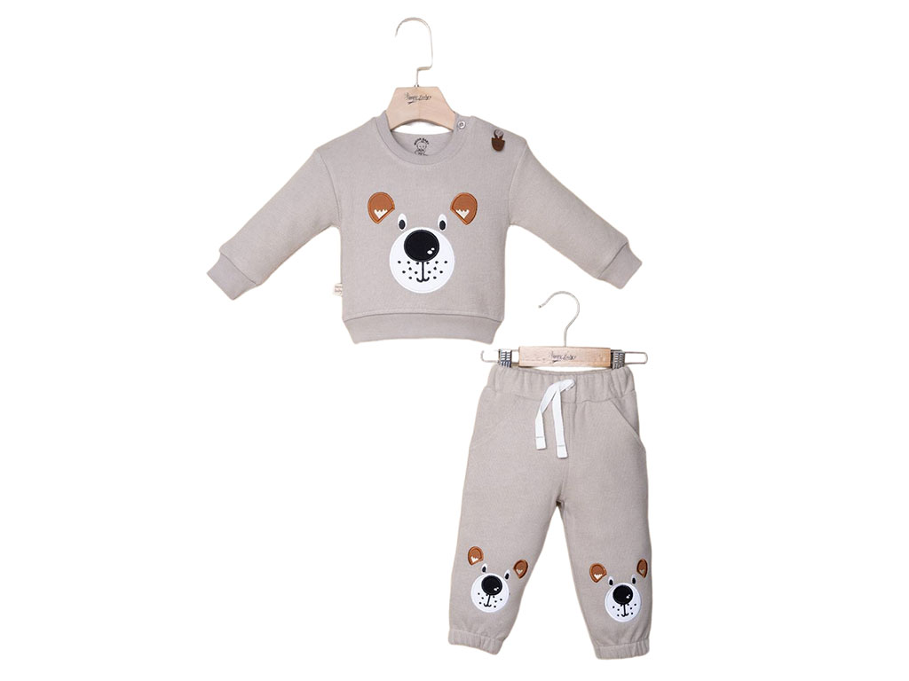 بلوز و شلوار سلانیک رنگ خاکی روشن طرح خرس تکه دوزی شده آی نور بیبی inoor baby