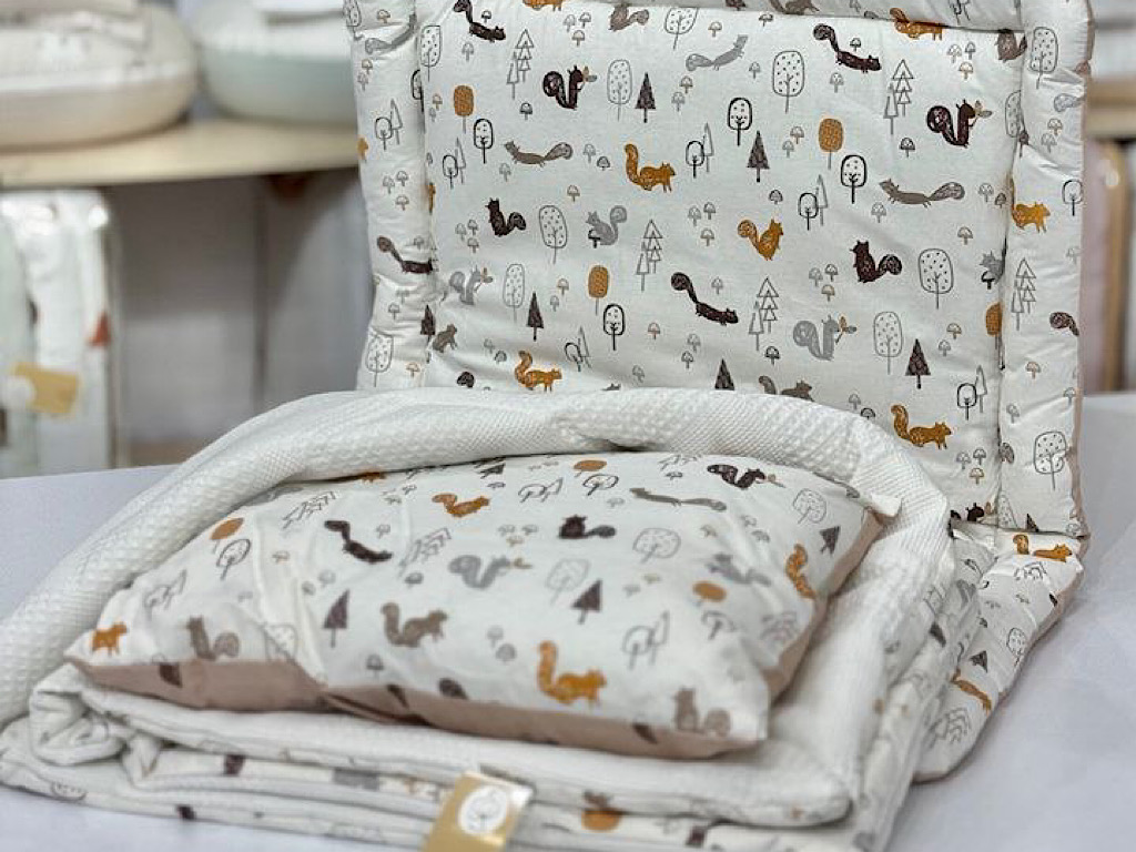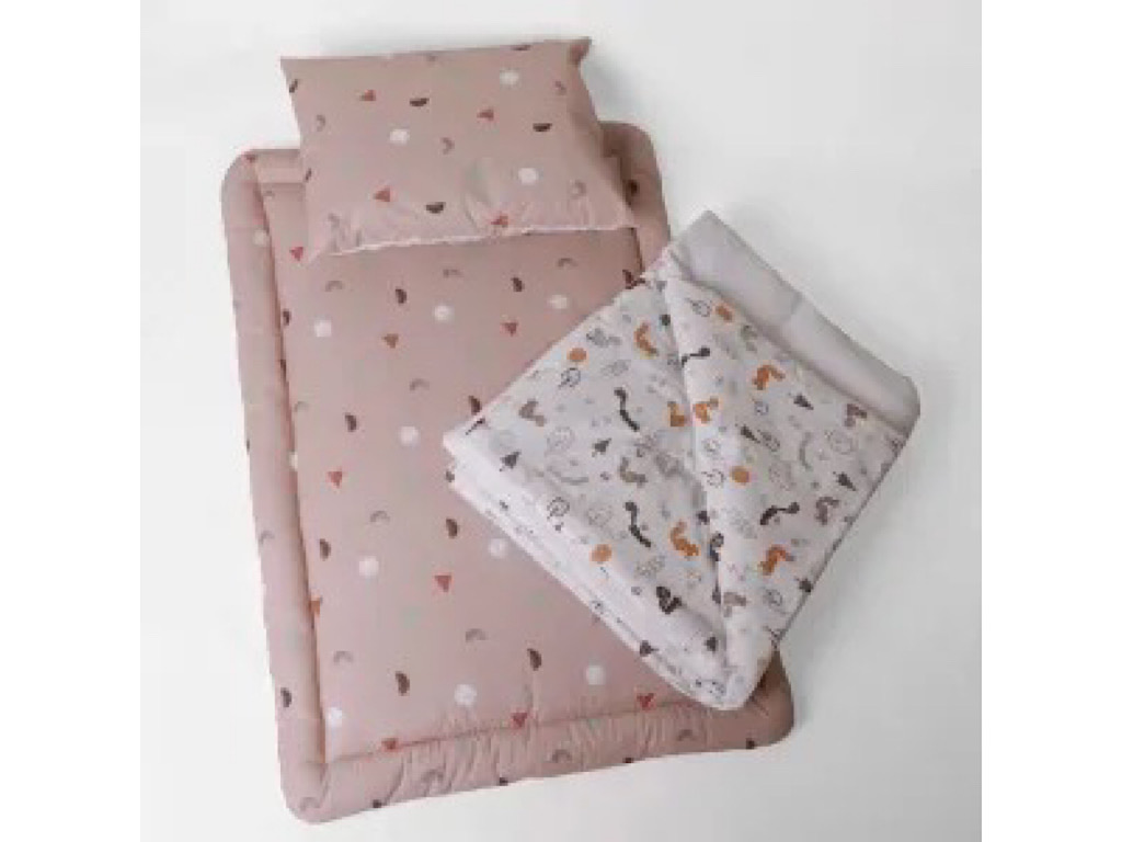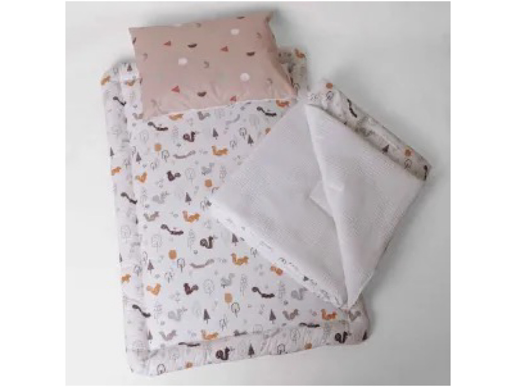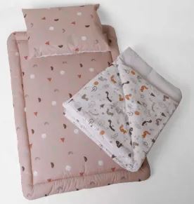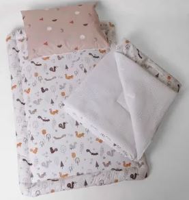 #سرویس خواب دم دستی مسافرتی نوزادی(سایز 2)مجموعه 3 عددی تشک، لحاف و بالشت طرح سنجاب قهوه ای سفید الا ELA