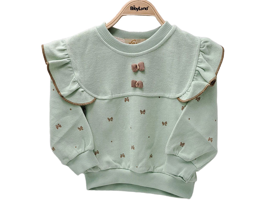 بلوز آستین بلند سلانیک دخترانه رنگ سبز کاهویی طرح پاپیون