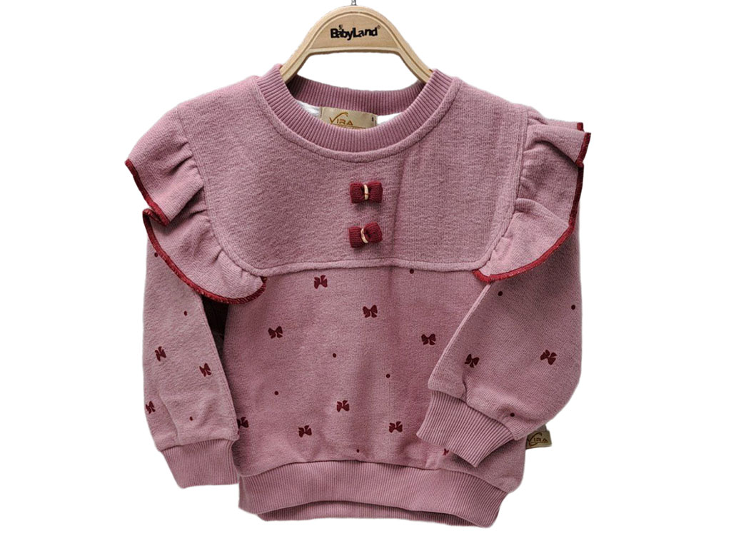 بلوز آستین بلند سلانیک دخترانه رنگ صورتی تیره طرح پاپیون