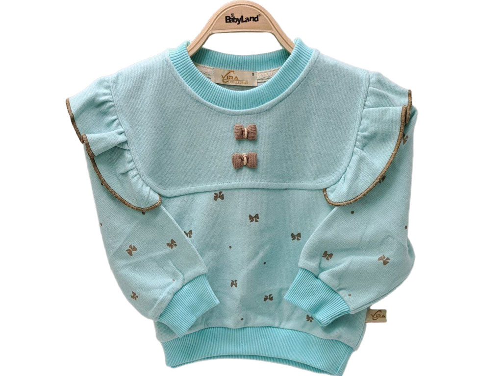 بلوز آستین بلند سلانیک دخترانه رنگ سبزآبی طرح پاپیون