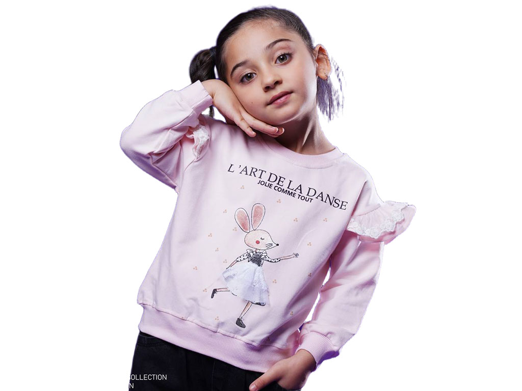 بلوز آستین بلند دورس دخترانه رنگ صورتی طرح موش