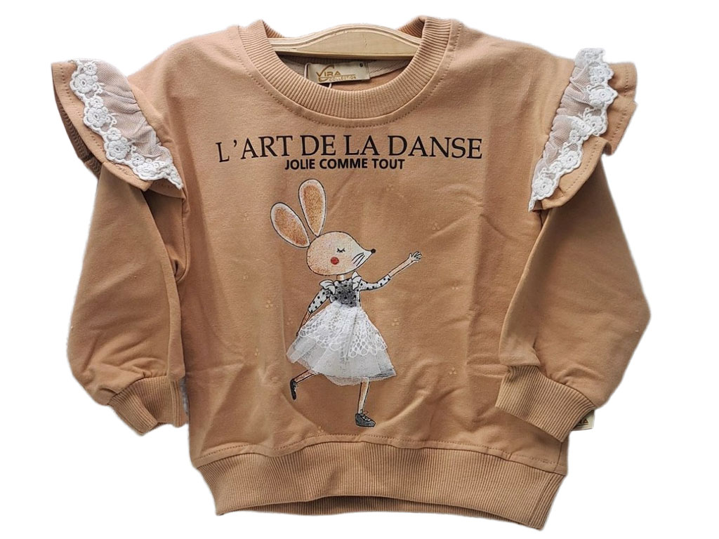 بلوز آستین بلند دورس دخترانه رنگ نسکافه ای طرح موش