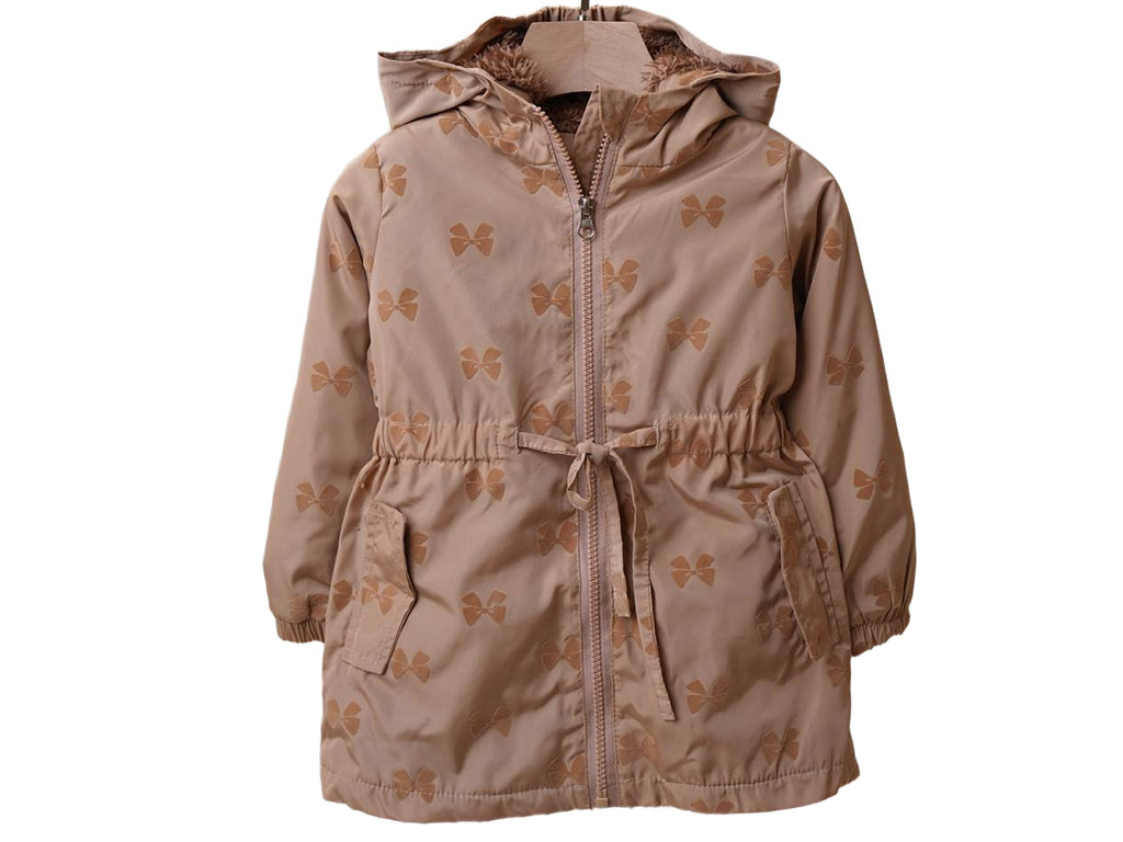 کاپشن کلاهدار توکرکی دخترانه رنگ نسکافه ای طرح پاپیون