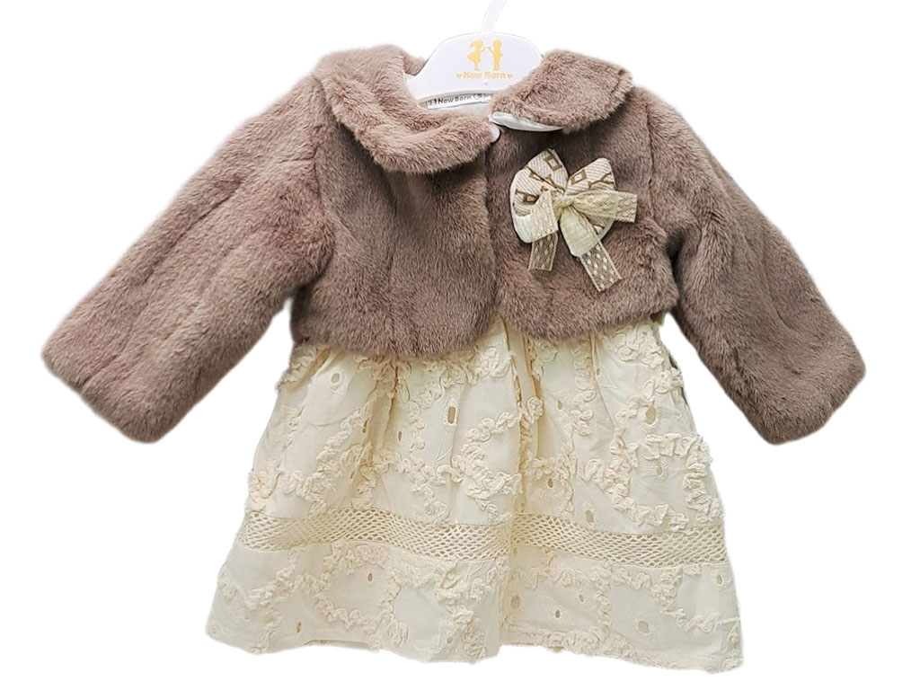 سارافون و کت نوزادی دخترانه رنگ نباتی دانتل دوزی شده