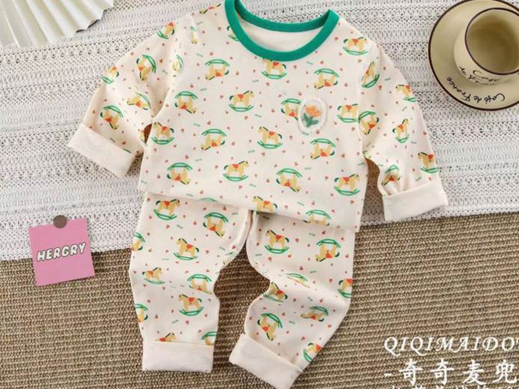 بلوز و شلوار راحتی دخترانه رنگ کرم روشن طرح راکر اسب
