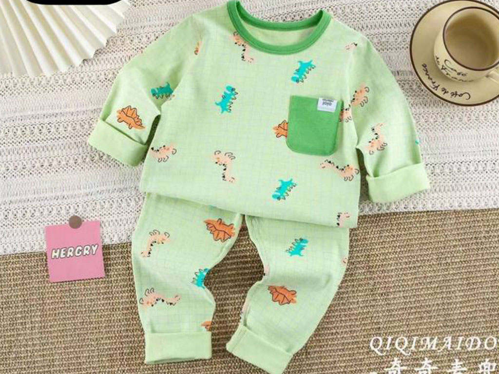 بلوز و شلوار راحتی رنگ سبز روشن طرح دایناسورهای رنگی