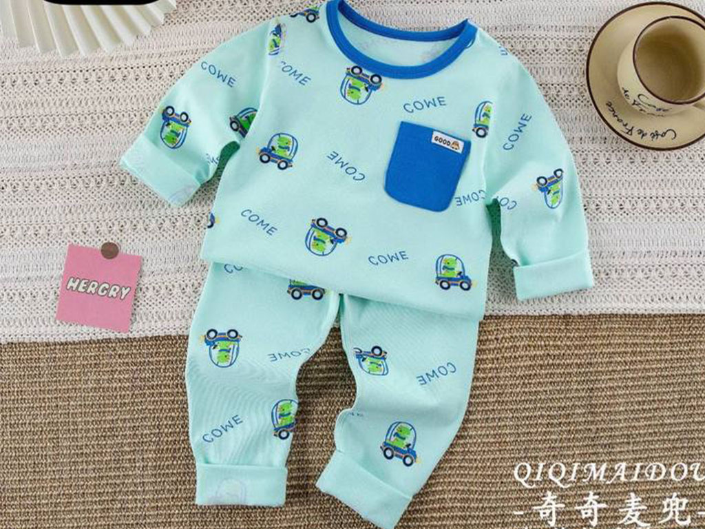 بلوز و شلوار راحتی رنگ سبزآبی طرح دایناسور ماشین سوار