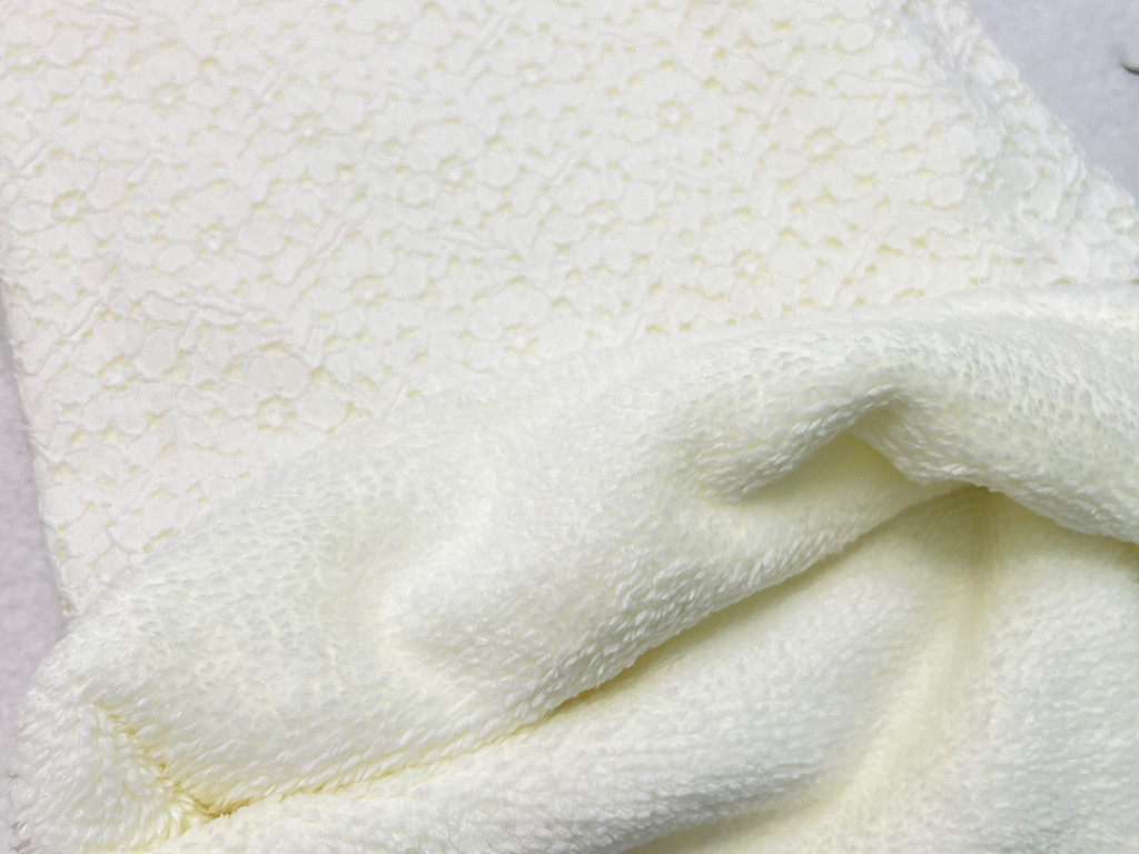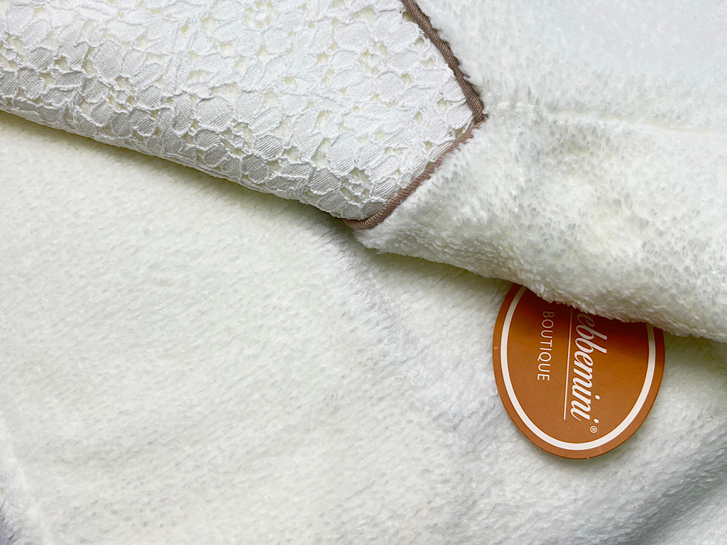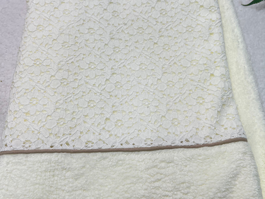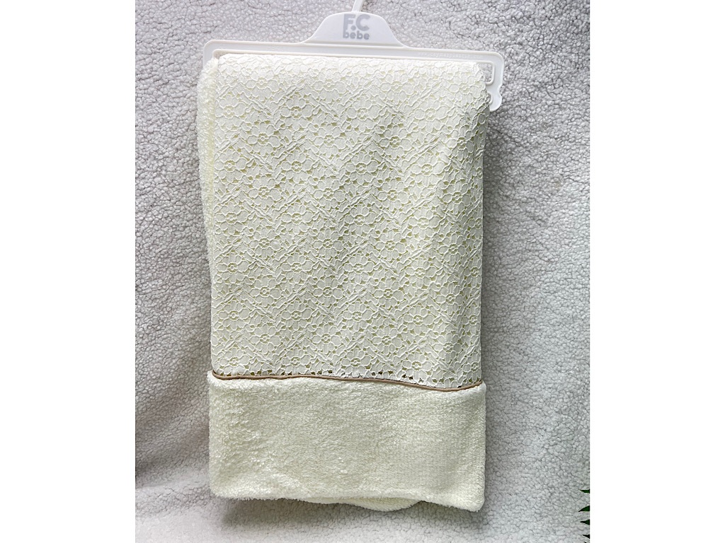 پتو دورپیچ نوزادی رنگ شیری طرح گل های گیپور دوزی شده bebbemini